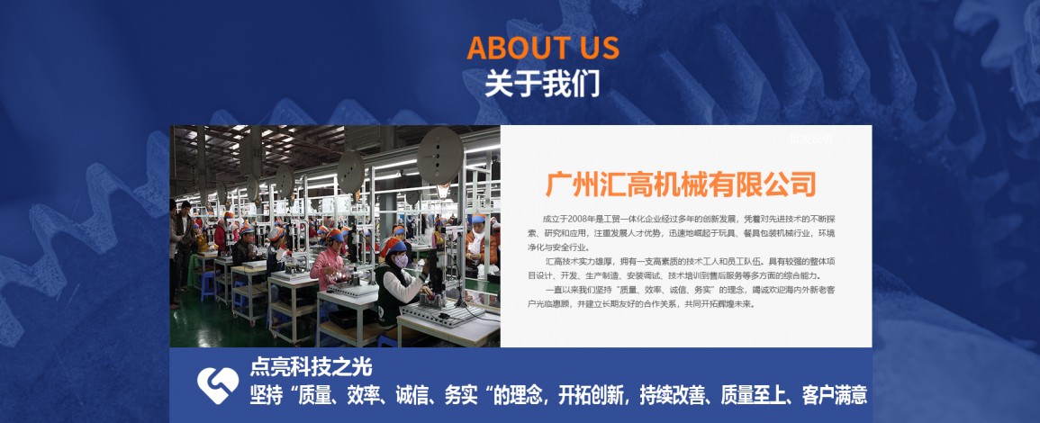 廣州匯高機械設備有限公司,成立于2008年是工貿一體化企業(yè)經(jīng)過多年的創(chuàng)新發(fā)展,憑著對先進技術的不斷探索、研究和應用,注重發(fā)展人才優(yōu)勢,迅速地崛起于玩具、餐具包裝機械行業(yè),環(huán)境凈化與安全行業(yè)。